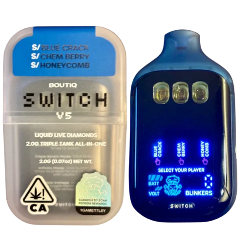 boutiq switch disposable V5 merges as the unrivaled leader in premium THC disposable vapes, boasting a revolutionary 2g triple-chamber design that redefines versatility. This cutting-edge device empowers users to effortlessly toggle between three exclusive strains or flavors think invigorating sativas, balanced hybrids, and indulgent indicas like tropical pineapple punch, creamy vanilla haze, or zesty citrus fusion all in one sleek, portable unit. Powered by advanced triple ceramic coils and a high-capacity battery, it delivers ultra-smooth, potent hits at 90%+ THC-A liquid diamonds potency, outlasting rivals with zero leaks, clogs, or flavor bleed.